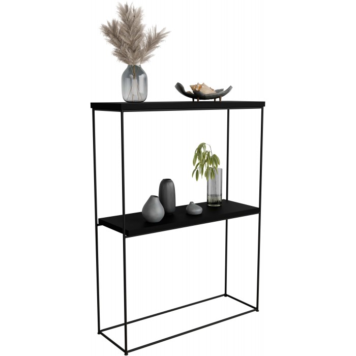 Minimalistyczna konsola, która nie tylko wzbogaci Twoje wnętrze, ale również doda charakteru w stylu loftowym i industrialnym. Solidny blat w kształcie prostokąta o grubości 1,8 cm, wygląda bardzo estetycznie. Stelaż wykonany z solidnego drutu o grubości 8 mm, malowany proszkowo, dodaje lekkości i subtelnej elegancji.