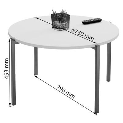 Największą zaletą tego modelu jest prosta, okrągła forma i wygodny blat o średnicy 75 cm. To praktyczny stolik kawowy, który daje więcej miejsca na codzienne drobiazgi, a jednocześnie zachowuje lekką wizualnie i nowoczesną bryłę.