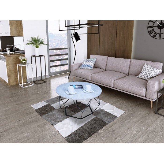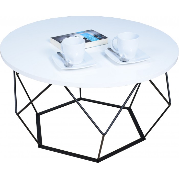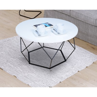 Wyjątkowy, praktyczny i elegancki, a zarazem prosty stolik kawowy. Połączenie metalu z płytą laminowaną (płyta wiórowa) w okleinie PCV. Solidny blat w kształcie koła, o grubości 1,8 cm zapewnia wyjątkowy design naszego stolika. Stelaż wykonany z mocnego i trwałego drutu 8 mm. Posiadamy własną lakiernię proszkową, więc do tematu podchodzimy profesjonalnie. Konstrukcje stolika malowane są dwiema warstwami: pierwsza warstwa (fosforanowa) odtłuszcza, czyści i zapobiega korozji. Druga warstwa to już właściwa farba do malowania proszkowego. Stolik wykonany jest na najwyższym poziomie.