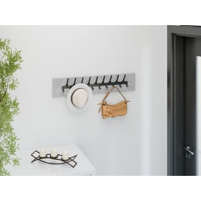 Wieszak ścienny pozwala lepiej wykorzystać przestrzeń ściany i uporządkować strefę wejściową. Odzież oraz dodatki możesz wygodnie odwiesić na haczykach, dzięki czemu najpotrzebniejsze rzeczy są zawsze pod ręką po wejściu do domu.