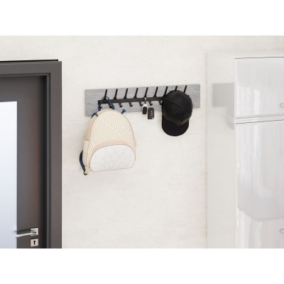 Wieszak ścienny 70x15 cm to praktyczny mebel do przedpokoju, korytarza i nowoczesnych wnętrz loftowych. Panel z płyty laminowanej oraz metalowy wieszak zapewniają wygodę użytkowania, trwałość i funkcjonalne miejsce na codzienną odzież oraz dodatki. Model dostępny jest w 18 wariantach kolorystycznych, a prosta instrukcja pozwala szybko przygotować go do montażu.